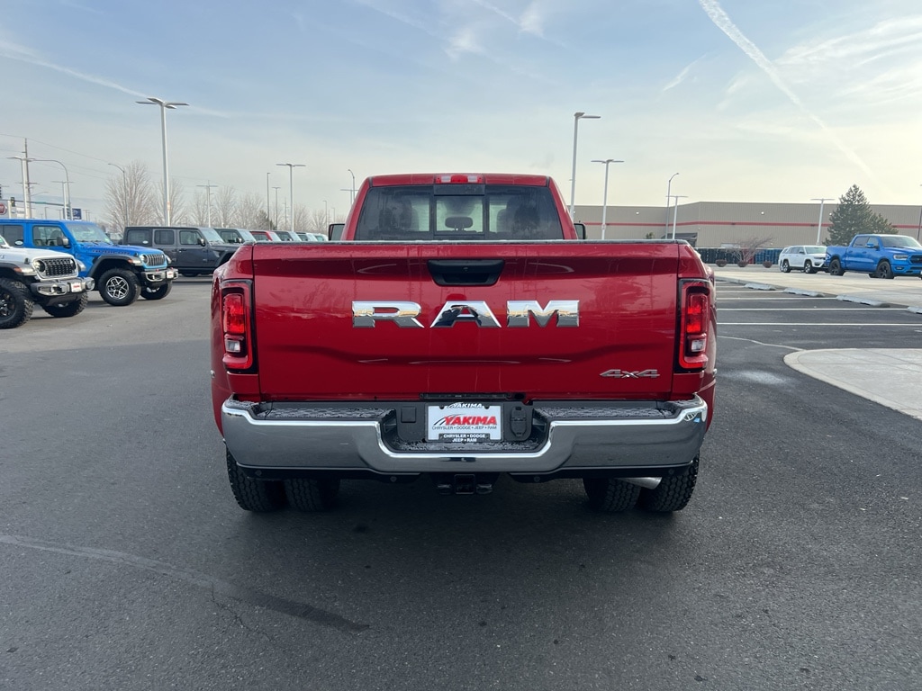 Cold Weather Group: Engine Block Heater; MOPAR Winter Front Grille Cover. Tradesman Level 2A Equipment Group: Convenience Group; Google Android Auto; SiriusXM Radio Service; For Details Visit DriveUconnect.com; 17 X 6.0 Steel Chrome Clad Wheels; For More Info. Call 800-643-2112; Integrated Voice Command with Bluetooth; Emergency Vehicle Alert System (EVAS); Manual Folding Exterior Mirrors; 12 Touchscreen Display; Mirror Running Lights; Exterior 115V AC Outlet; Alexa Built-In; Apple CarPlay; Power-Adjustable Convex Aux Mirrors; Cloth 40/20/40 Bench Seat; Disassociated Touchscreen Display; Bright Wheel Skins; Matte Black Mesh with Chrome Grille; 115-Volt Auxiliary Front Power Outlet; Center Hub; Rear View Auto Dim Mirror; Rear Power Sliding Window; Connectivity - US/Canada; Tinted Acoustic Windshield Glass; GPS Navigation; 4G LTE Wi-Fi Hot Spot; GPS Antenna Input; Bright Rear Bumper; Exterior Mirrors with Heating Element; Chrome Grille Surround; MOPAR Black Tubular Side Steps; SiriusXM with 360L; Global Telematics Box Module; Connected Travel and Traffic Services; Black Exterior Mirrors; Carpet Floor Covering; Off-Road Information Pages; Selectable Tire Fill Alert; Trailer Tow Pages; 400W Inverter; HD Radio; Power Heat Fold Telescopic Mirrors; Uconnect 5 Navigation with 12.0 Display Radio; Exterior Mirrors with Supplemental Signals; Exterior Mirrors Courtesy Lamps; Air Conditioning ATC with Dual Zone Control; Manual Telescoping Mirrors; Power Adjust Mirrors; Front and Rear Floor Mats; Bright Front Bumper; ParkSense Front/rear Park Assist System. Quick Order Package 24A Tradesman. Bed Utility Group: MOPAR Spray in Bedliner; MOPAR Deployable Bed Step; LED Bed Lighting. Dual Rear Wheels. LT235/80R17E Off Road Tires. 5th Wheel/gooseneck Towing Prep Group. MOPAR Black Tubular Side Steps. Cloth 40/20/40 Bench Seat. MyFlexCare Service Diesel. 50 Gallon Fuel Tank. Molten Red Pearlcoat. Instrument Panel Mounted Auxiliary Switches. MOPAR Front and Rear Rubber Floor Mats. Rear Wheelhouse Liners. Clearance Lamps. **Equipment listed is based on original vehicle build and subject to change. Please confirm the accuracy of the included equipment by calling the dealer prior to purchase.**