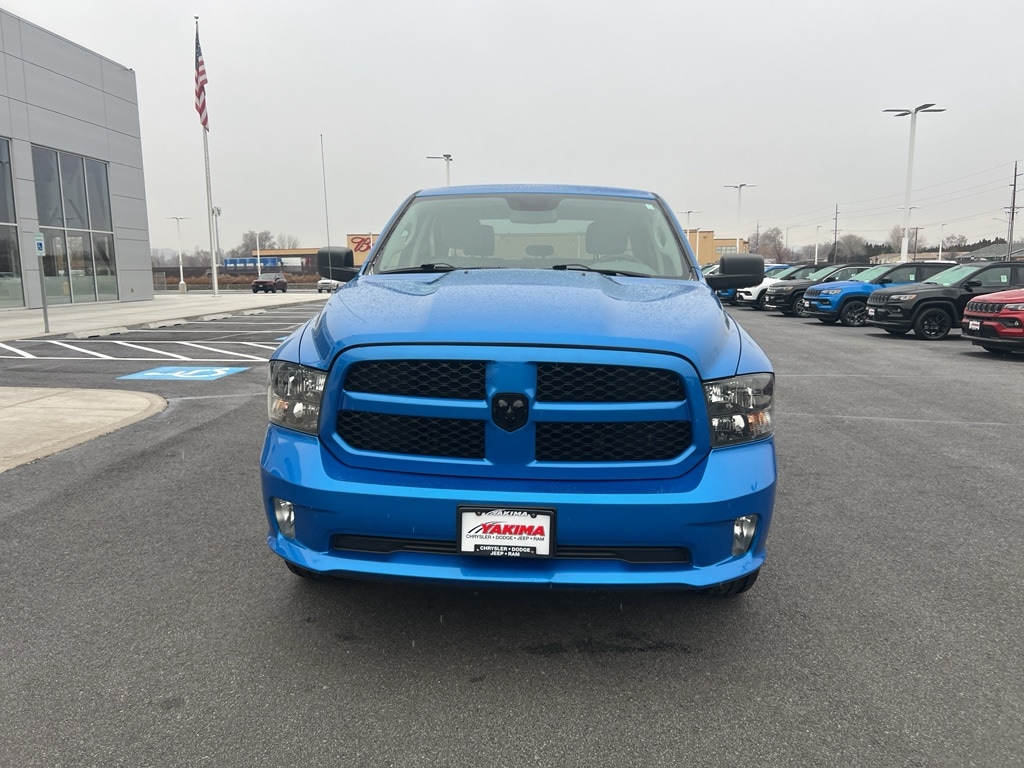 Electronics Convenience Group: Google Android Auto; SiriusXM Satellite Radio; USB Mobile Projection; Media Hub with 2 USB and Auxiliary Input Jack; Uconnect 4C Radio with 8.4 Display; Hands-Free Comm with Bluetooth; 1-Year SiriusXM Guardian Subscription; A/C with Dual-Zone Automatic Temperature Control; GPS Antenna Input; Temperature and Compass Gauge; 7 Colour In-Cluster Display; Humidity Sensor; 8.4 Touchscreen; Apple CarPlay Capable; Overhead Console. Quick Order Package 27J Express: Delete Under-Rail Box Bedliner; Rear Floor Mats; Fog Lamps; Front Floor Mats; Body-Colour Front Fascia; Body-Colour Grille; Carpet Floor Covering; Body-Colour Rear Bumper with Step Pads; Ram 1500 Express Group. Wheel and Sound Group. Quick Order Package 26J Express: Delete Under-Rail Box Bedliner; Rear Floor Mats; Fog Lamps; Front Floor Mats; Body-Colour Front Fascia; Body-Colour Grille; Carpet Floor Covering; Body-Colour Rear Bumper with Step Pads; Ram 1500 Express Group. Class IV Hitch Receiver. SiriusXM Satellite Radio. Express Black Accents Package. Hydro Blue Pearl. **Equipment listed is based on original vehicle build and subject to change. Please confirm the accuracy of the included equipment by calling the dealer prior to purchase.**